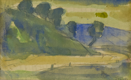 Mario Sironi Sassari 1885 - Milano 1961 Paesaggio, anni '20 Tecnica mista su carta, cm. 13,5x21,5 Firmato in basso a destra. Autentica di Francesco Meloni su foto, con descrizione dettagliata dell'Opera.