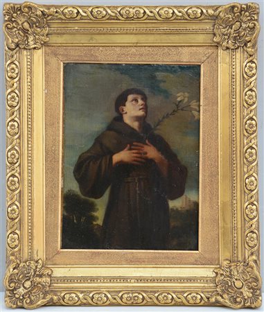 Scuola dell'Italia settentrionale del secolo XVII "Sant'Antonio da Padova" olio su tela (cm 40x29,5) In cornice (difetti)