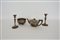 Lotto composto da una teiera, due candelieri e una ciotola in metallo argentato