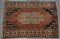 Tappeto Mazlagan, Persia inizio sec. XX. Disegno a medaglione beige su campo mattone. Angolari blu notte (cm 191x131) (difetti e mancanze)