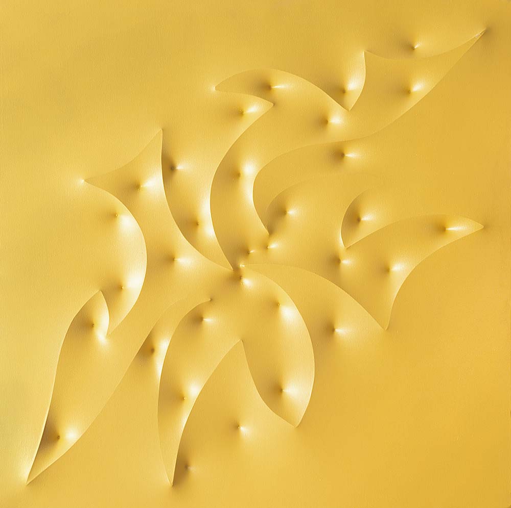 GIUSEPPE AMADIO Todi 19/05/1944 - DITRO, tela estroflessa gialla cm. 80x80, titolo e firma al retro, dichiarazione d'autenticità dell'artista su foto, opera senza cornice.