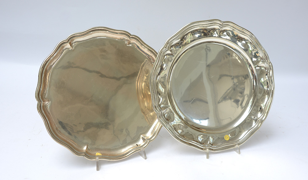 Lotto composto da due piatti in argento di forma circolare sagomata. Italia, metà sec. XX (d. cm 30 ca.) (gr tot 1040 ca.)