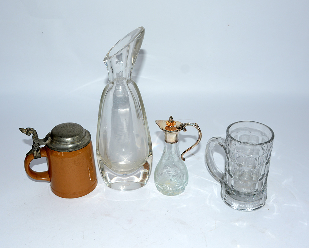 Lotto composto da due versatoi e due boccali da birra di diversa epoca e fattura (difetti)