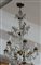 Lampadario a sei fiamme con struttura e fusto in bronzo e pendagli in vetro e cristallo molato (h cm 110) (difetti e mancanze)