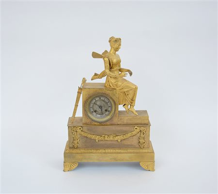 ANONIMO, FRANCIA Pendola in bronzo dorato sormontata da figura allegorica...