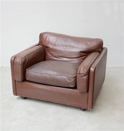 Poltrona imbottita rivestita in pelle color tabacco. Produzione Poltrona...