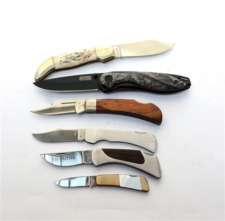 (Historica) Lotto composto da sei coltelli pieghevoli. In custodia originale.