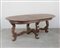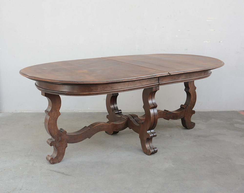 Tavolo fratino di forma ovale allungabile con gambe e traversa a lira (cm 205x80x110) (difetti)