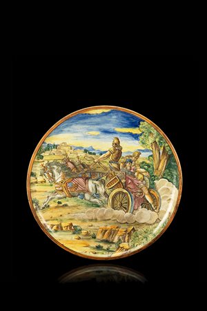 Manifattura Centro-Italia fine sec. XIX "Morte di Tosia" piatto in ceramica...