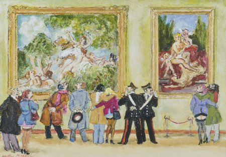 Walter Piacesi Ascoli Piceno 1929 Visita al museo Olio su tavola, cm. 35x50...