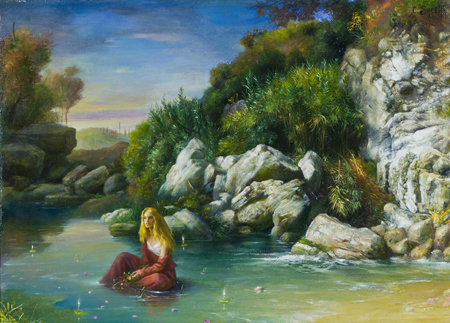 Claudio Sacchi Pesaro 1953 Ophelia Olio su tela, cm. 50x70 Firmato in alto a destra. Sul verso: firma.