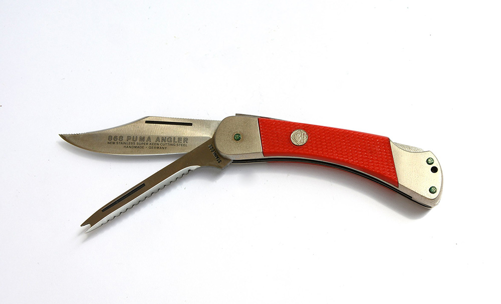 (Historica) Coltello multiuso con lama e sega pieghevole, Puma Angler (Germania). In confezione originale.