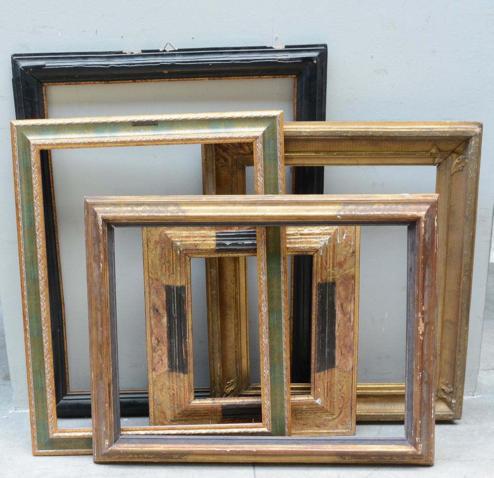 Lotto di cinque cornici di fattura e dimensioni differenti (difetti)