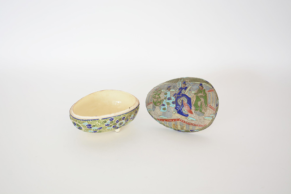 Manifattura giapponese Satzuma. Scatola in ceramica decorata in policromia a...