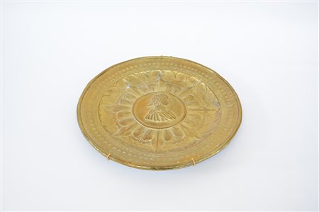 Antico elemosiniere in ottone decorato nel cavetto da profilo di imperatore...