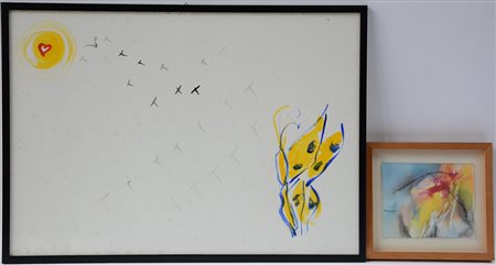 Lotto composto da due tecniche miste di soggetti, autori e misure diverse, in...