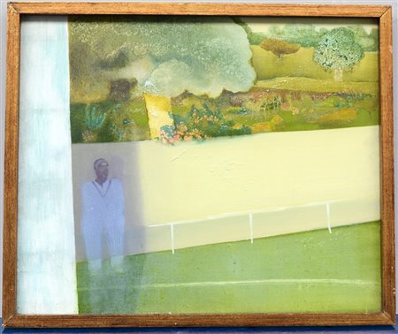 Peter Unsworth "Cricketer" 1964, olio su tela (cm 50x61). Timbro ed etichetta della Galleria Galatea, Torino al retro. In cornice