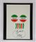Cavellini Guglielmo Achille (Brescia 1914 1990)"Autostoricizzazione" (autoritratto) 1984 dalla serie Adesivi. Tecnica mista su carta (cm 48x33) firmato e datato 1984 in basso al centro. Opera autenticata da Piero Cavellini (inv. n. Ades. 002). In cornice