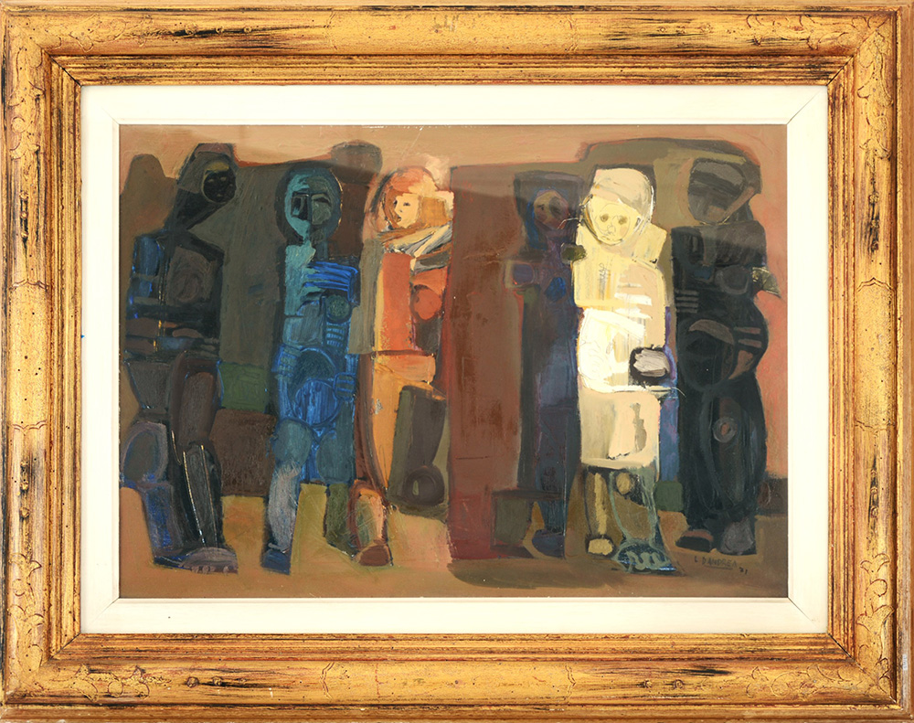 D'Andrea Lorenzo Lucca 1943 “Donna in bianco” 1971 Olio su tela, cm 50x69 firmato e datato in basso a destra, in cornice. Etichetta e timbri al retro: "Galleria Nuovo Saggitario, Milano"