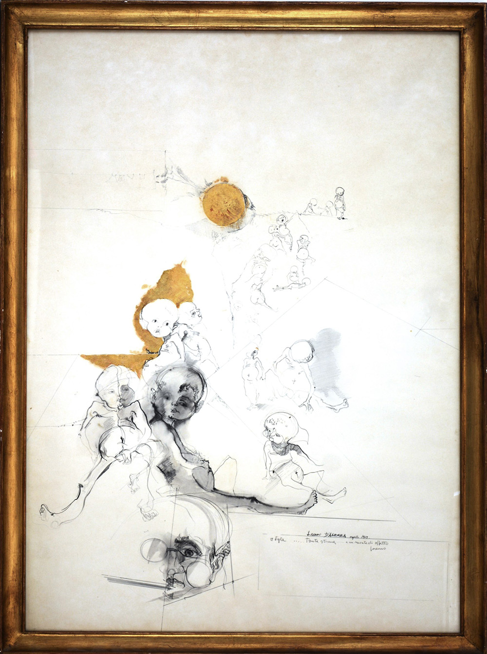 D'Andrea Lorenzo Lucca 1943 “Senza titolo” 1969 Tecnica mista su carta, cm 99x68,5 Firmato, datato e dedicato in basso a destra, in cornice