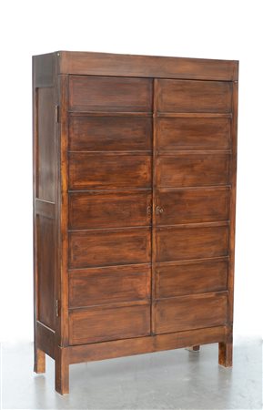 Scarpiera a due ante in legno massello e impiallacciato con fronti filettati. Italia, sec XX (cm 100 x165x38) (lievi difetti e restauri)