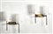 Coppia di appliques in metallo verniciato nero e ottone, diffusori cilindrici...