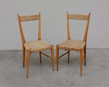Coppia di sedie in legno massello e corda. Italia, sec XX (gravi difetti)