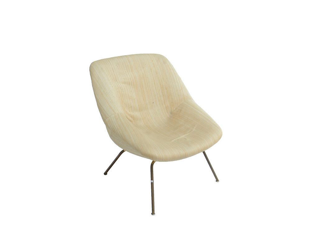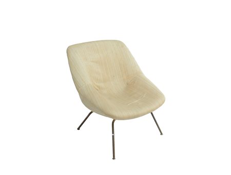 Sedia imbottita in metallo, rivestita in tessuto beige. Italia, sec XX (difetti e restauri)