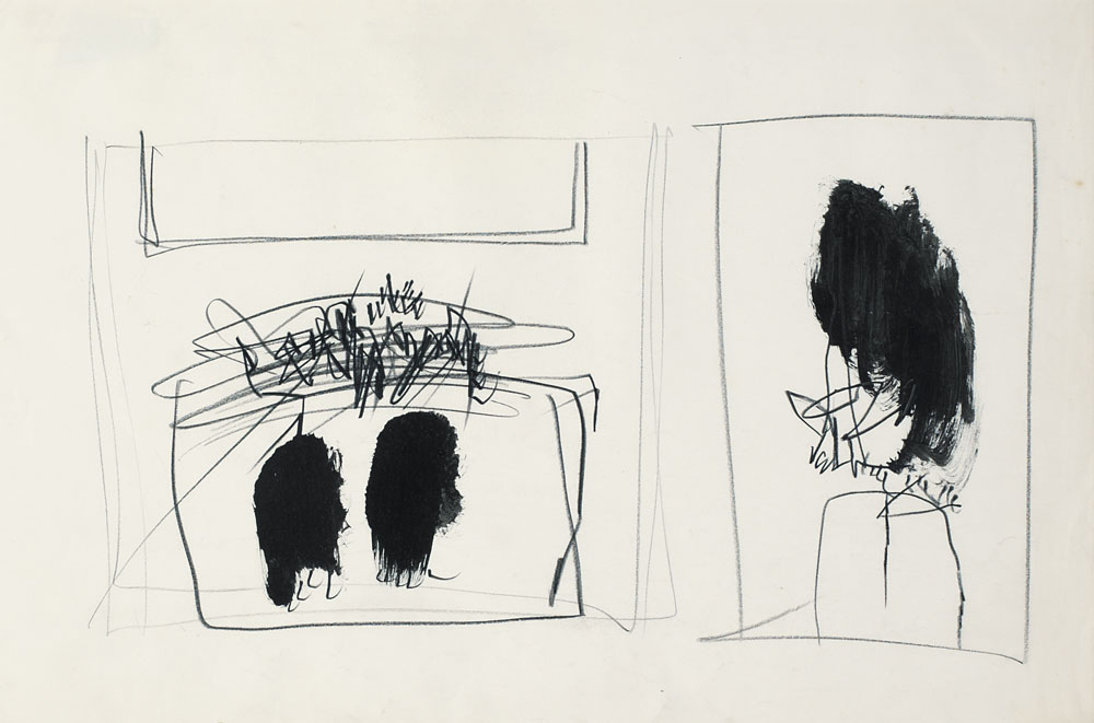 EMILIO SCANAVINO Genova 28/02/1922 - Milano 29/11/1986 - Senza titolo, (anni '60), tecnica mista su carta cm. 40x60, opera non firmata, dichiarazione d'autenticità della moglie Giorgina Graglia Scanavino su foto.