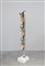 Lampada a stelo con montante in metallo cromato e tre luci a forma di fiore in vetro e lamina d'acciaio, basamento in marmo, anni 70 (h cm 152) (difetti)