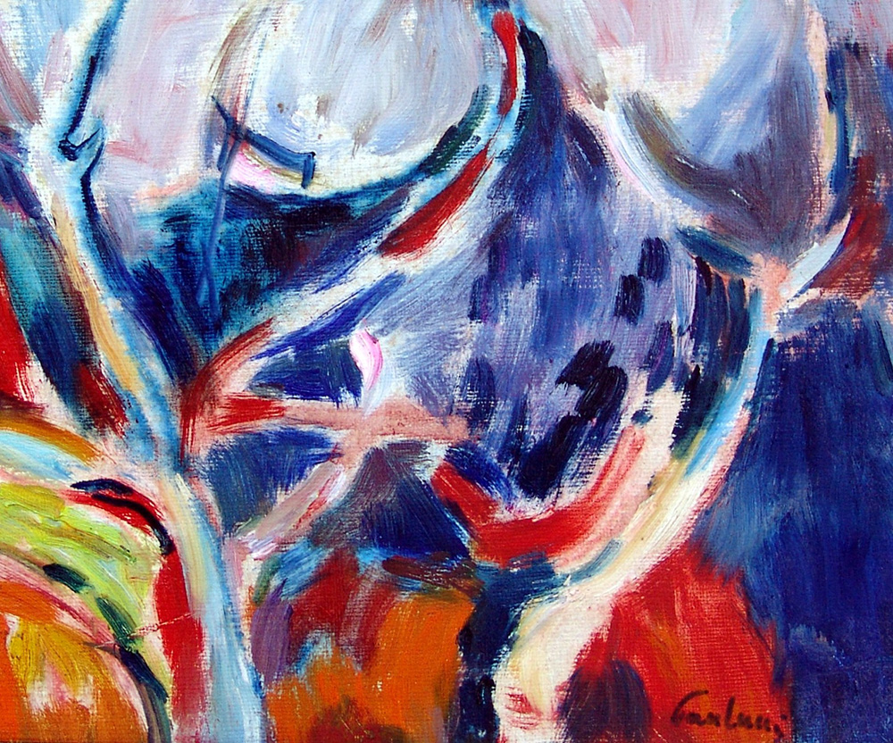 Enrico Paulucci 1901, Genova (Ge) - 1999, Torino (To) - [Italia] Ulivi olio su tela 30x40 cm c. 1970 firma dell’artista in basso a destra e sul retro; opera con cornice certificato Archivio Paulucci