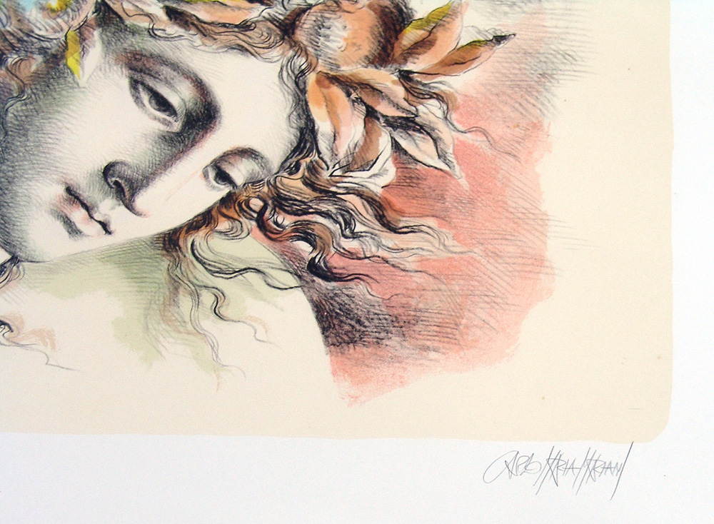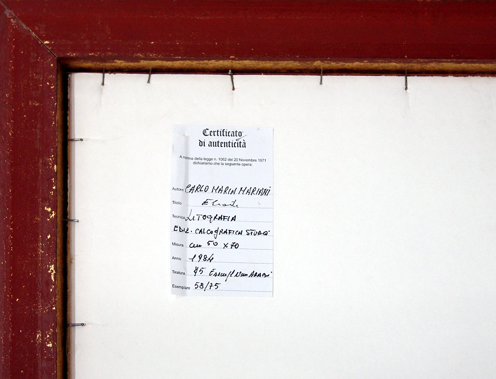 Carlo Maria Mariani 1931, Roma (Rm) - [Italia] Eliade litografia 50x70 cm 1984 es. 58/75; firma dell’artista in basso a destra; opera con cornice dichiarazione di autenticità Picenum