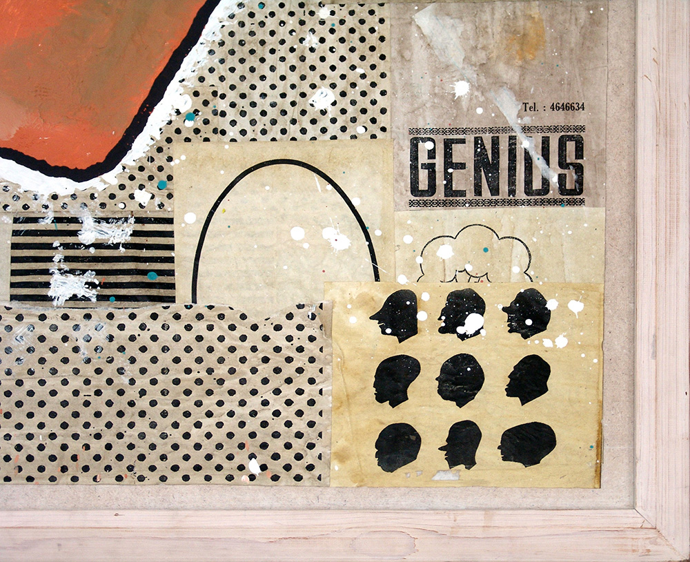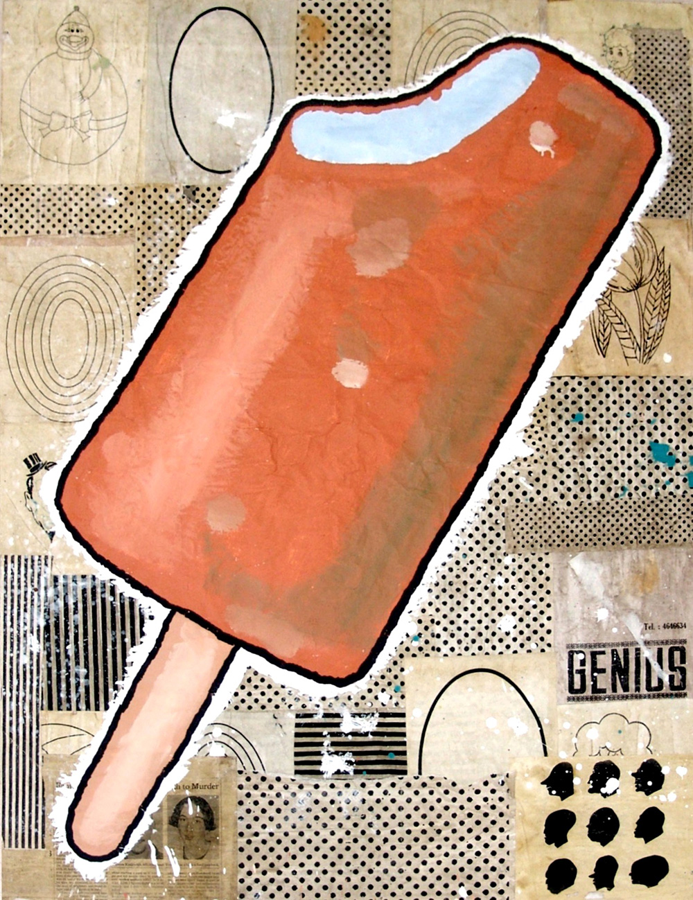 Donald Baechler 1956, Nartford in Connecticut - [U.S.A.] senza titolo acrilico e collage su carta 131x101 cm 1998 firma dell’artista sul retro; opera con cornice certificato di autenticità firmato dall’artista