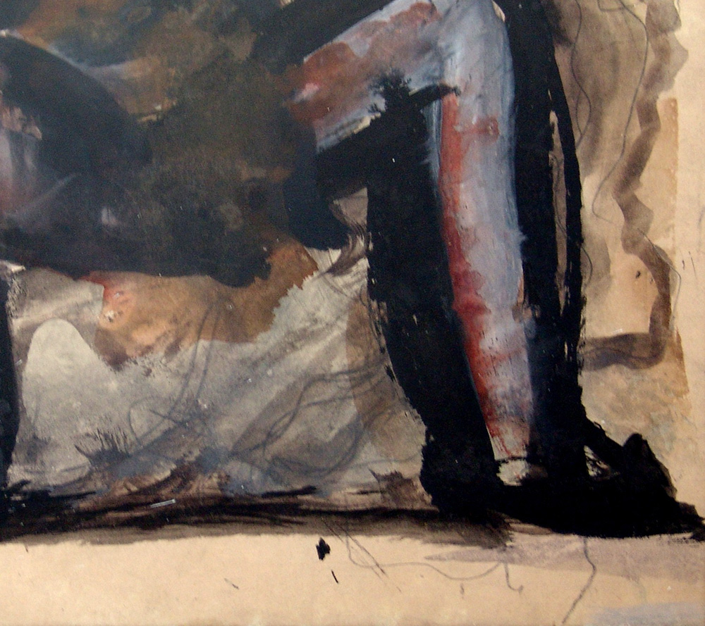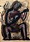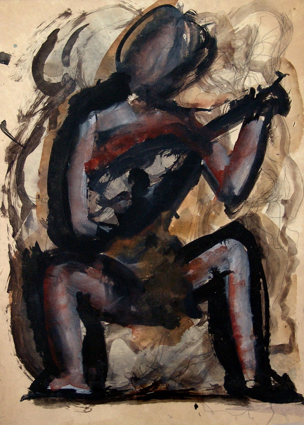 Mario Sironi 1885, Sassari (Ss) - 1961, Milano (Mi) - [Italia] Figura accovacciata con strumento musicale matita e tempera su carta applicata su tela 50x34 cm c. 1950 opera con cornice opera archiviata dall'Associazione per il Patrocinio e la Promozione della Figura e dell'Opera di Mario Sironi
