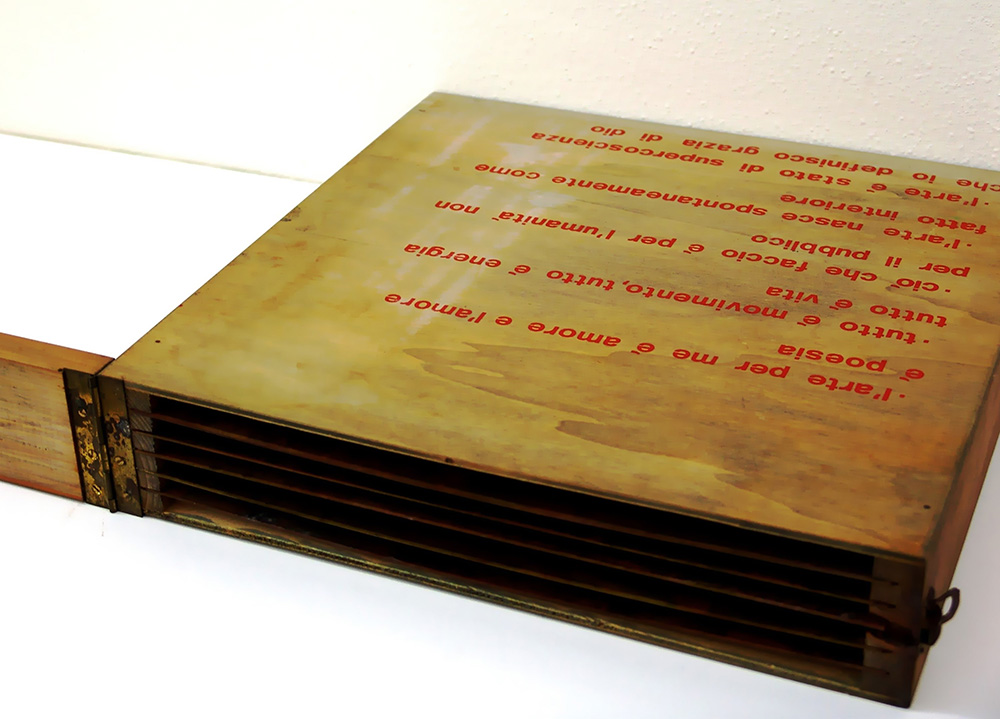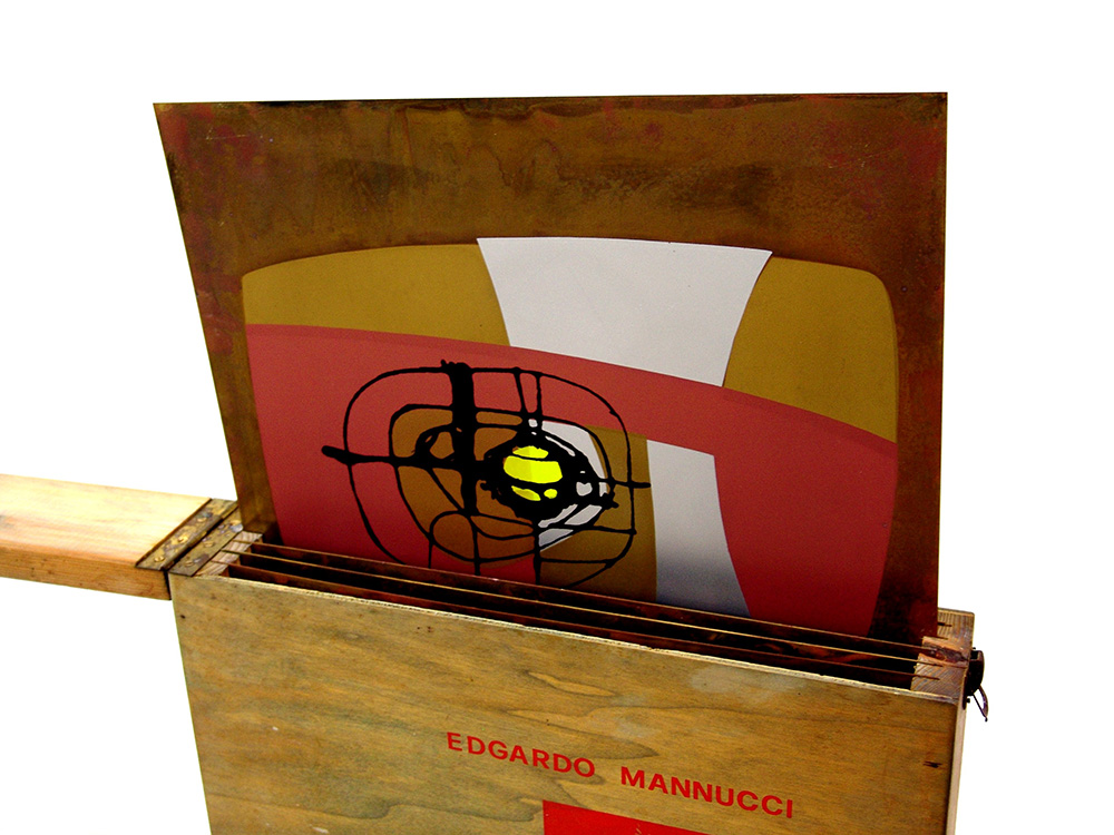 Edgardo Mannucci 1904, Fabriano (An) - 1986, Arcevia (An) - [Italia] Maschere serigrafia su lastra di ottone 33x33 cm cad. es. 14/20; collana di opere d’arte firmate a mano dall’artista; n. 5 tavole su lastre di ottone; cofanetto in legno formato 36x38 cm