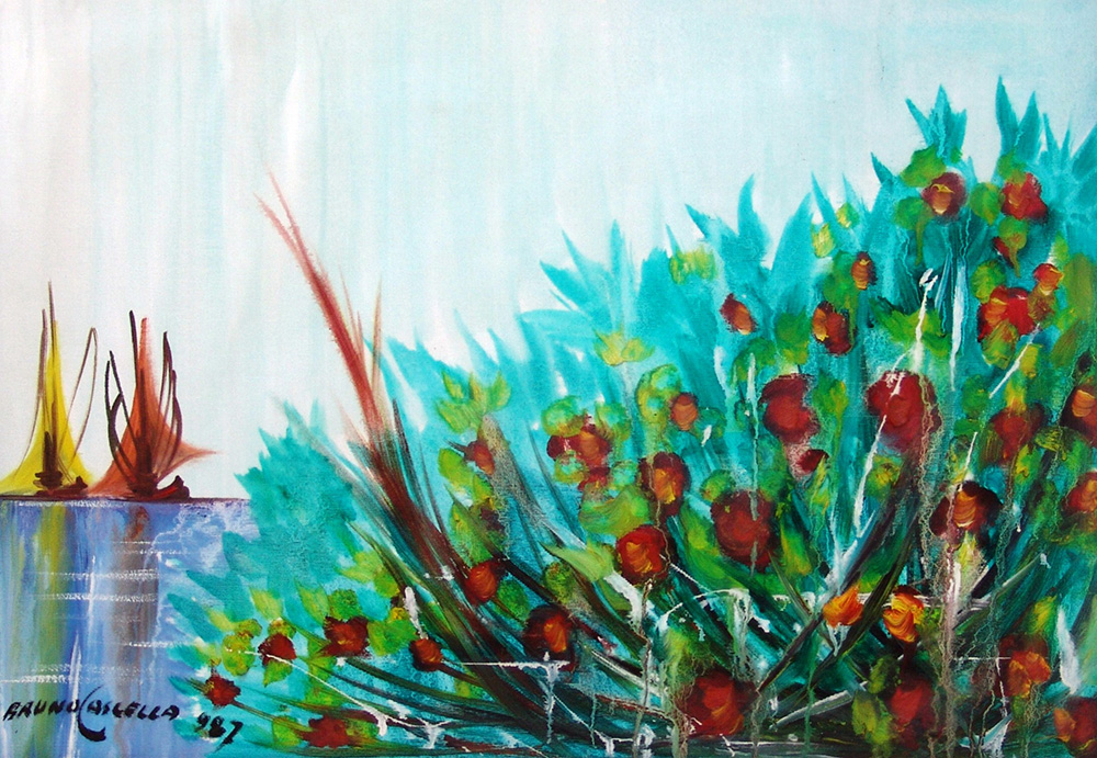 Bruno Cascella 1919, Pescara (Pe) - 1994, Pescara (Pe) - [Italia] senza titolo olio su tela 50x70 cm 1987 firma dell’artista in basso a sinistra; opera con cornice certificato d'autenticità Picenum