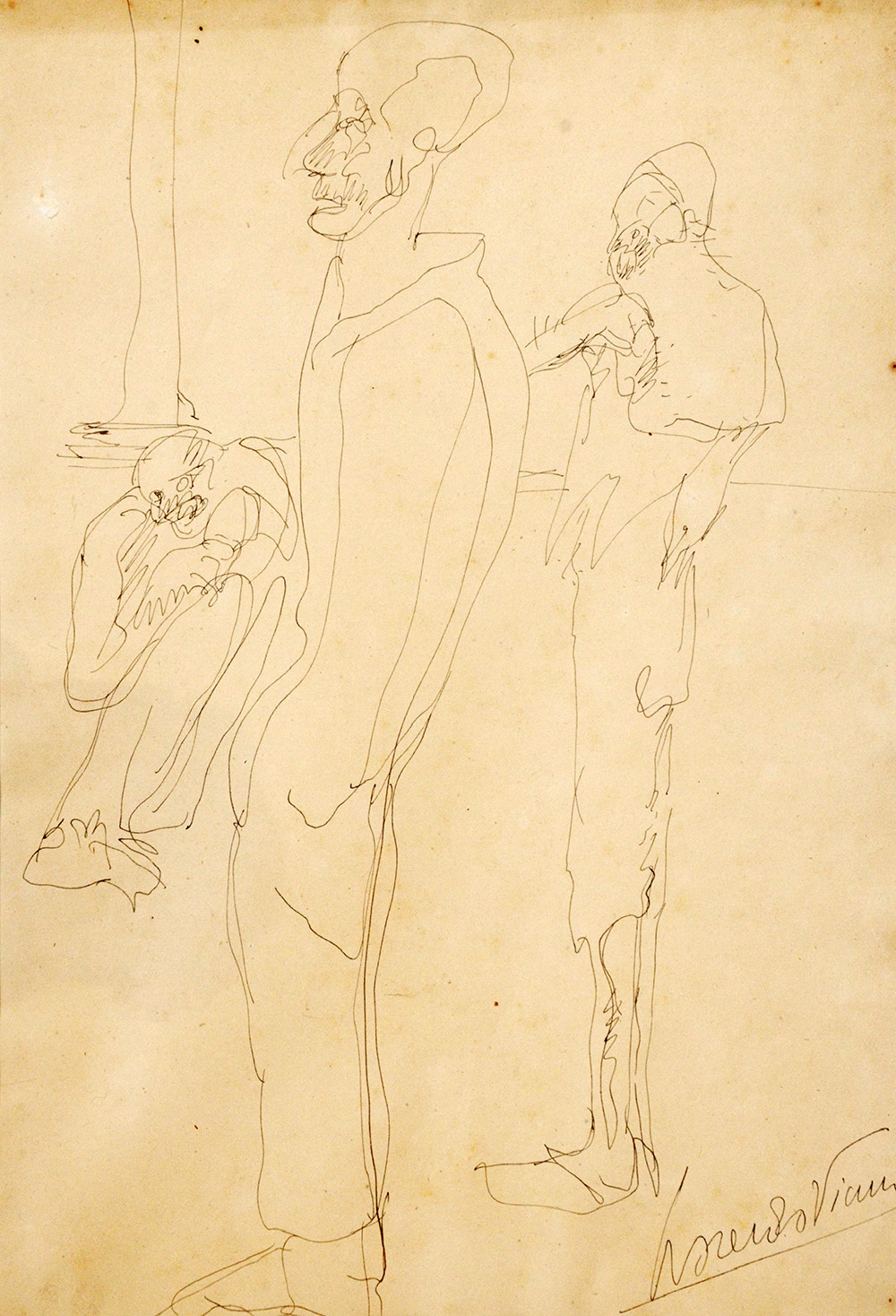 Lorenzo Viani 1882, Viareggio (Lu) - 1936, Lido di Ostia (Rm) - [Italia] I pazzi china su carta 34x24 cm 1930/1933 firma dell’artista in basso a destra; opera con cornice certificato di autenticità dell'artista