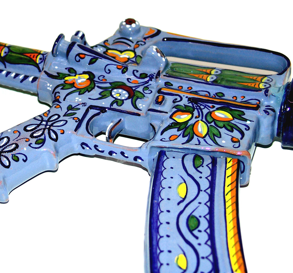 Antonio Riello 1958, Marostica (Vi) - [Italia] Assault rifle scultura in ceramica 25x72x7 cm firma dell’artista sul calcio dell’arma con il marchio della Bottega Ceramica Gatti di Faenza certificato di autenticità Picenum