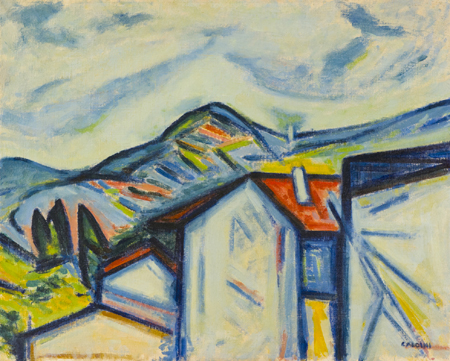 Giancarlo Caldini Lucca 1926 Studio di paesaggio, fine anni '50 Olio su tela, cm. 60x75 Firmato in basso a destra. Sul verso: firma e titolo.