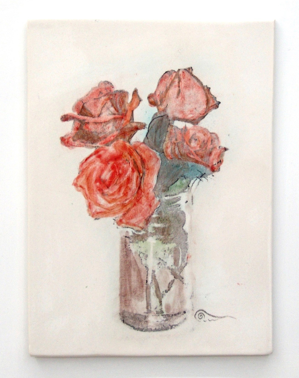 Mauro Mazziero 1966, Recanati (Mc) - [Italia] Fiori piastrella in ceramica invetriata 24,5x18,5 cm 2016 firma dell’artista sul retro certificato di autenticità firmato dall’artista