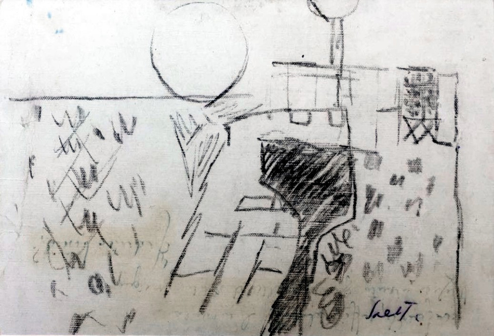 Bruno Saetti 1902, Bologna (Bo) - 1984, Bologna (Bo) - [Italia] senza titolo matita su carta 10,5x17 cm 1962 firma dell’artista in basso a destra certificato di autenticità Picenum