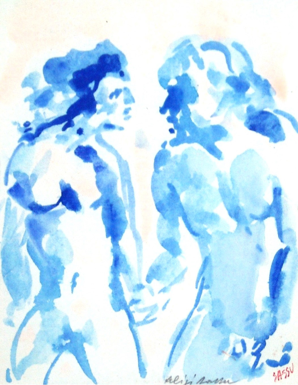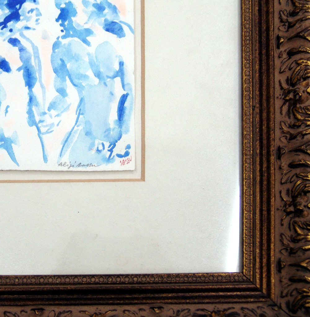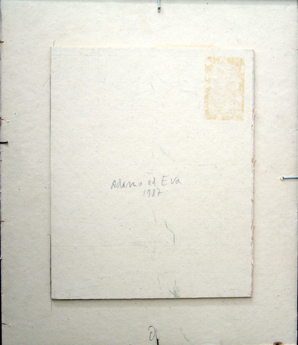 Aligi Sassu 1912, Milano (Mi) - 2000, Pollença (Spagna) - [Italia] Adamo ed Eva acquerello su carta 17,5x12,5 cm 1987 firma dell’artista in basso a destra; opera con cornice certificato di autenticità Picenum