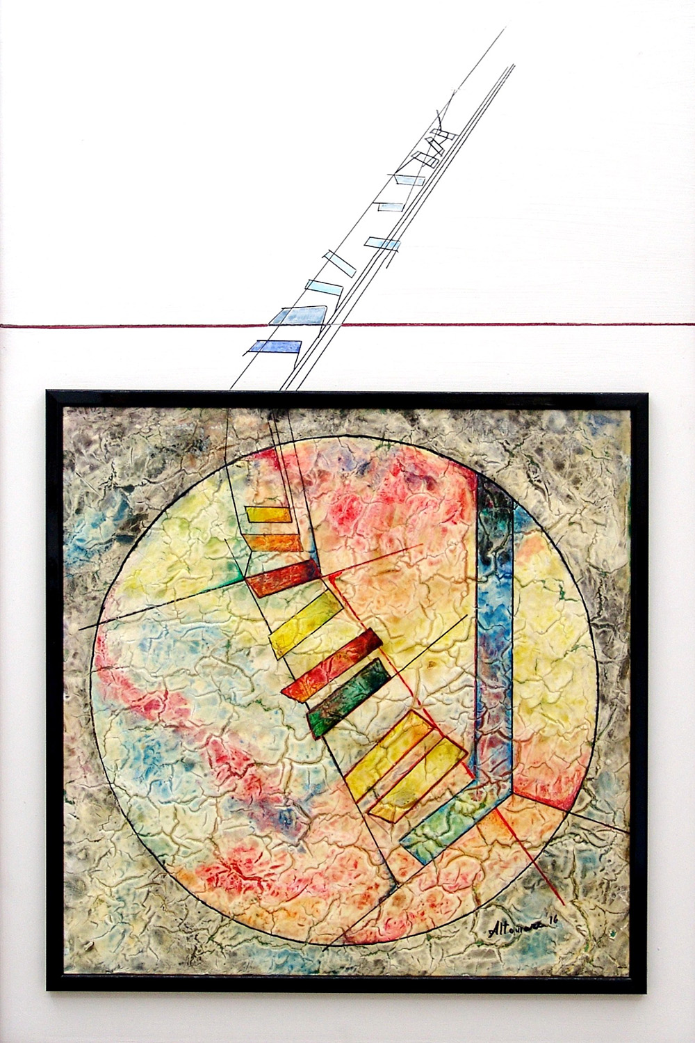 Sebastiano Altomare 1946, Avola (Sr) - [Italia] Il sogno di Giobbe tecnica mista su tela e tavola 90x60 cm 2016 firma dell’artista in basso a destra e sul retro; opera con cornice certificato di autenticità Picenum