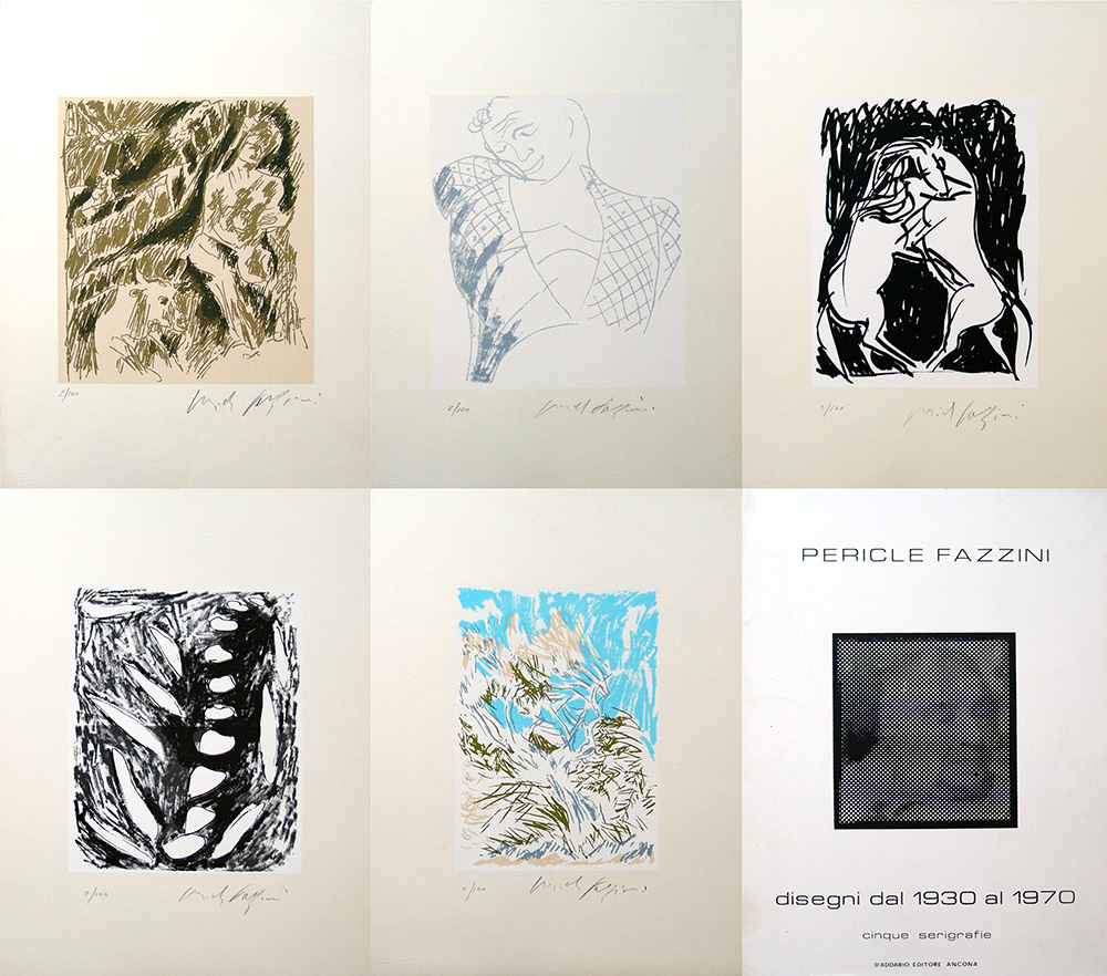 Pericle Fazzini 1913, Grottammare (Ap) - 1987, Roma (Rm) - [Italia] Disegni dal 1930 al 1970 serigrafia 50x35 cm cad. 1980 es. 2/100; collana di n. 5 serigrafie; D'Addario Editore Ancona; firma dell’artista in basso a destra certificato di autenticità degli eredi