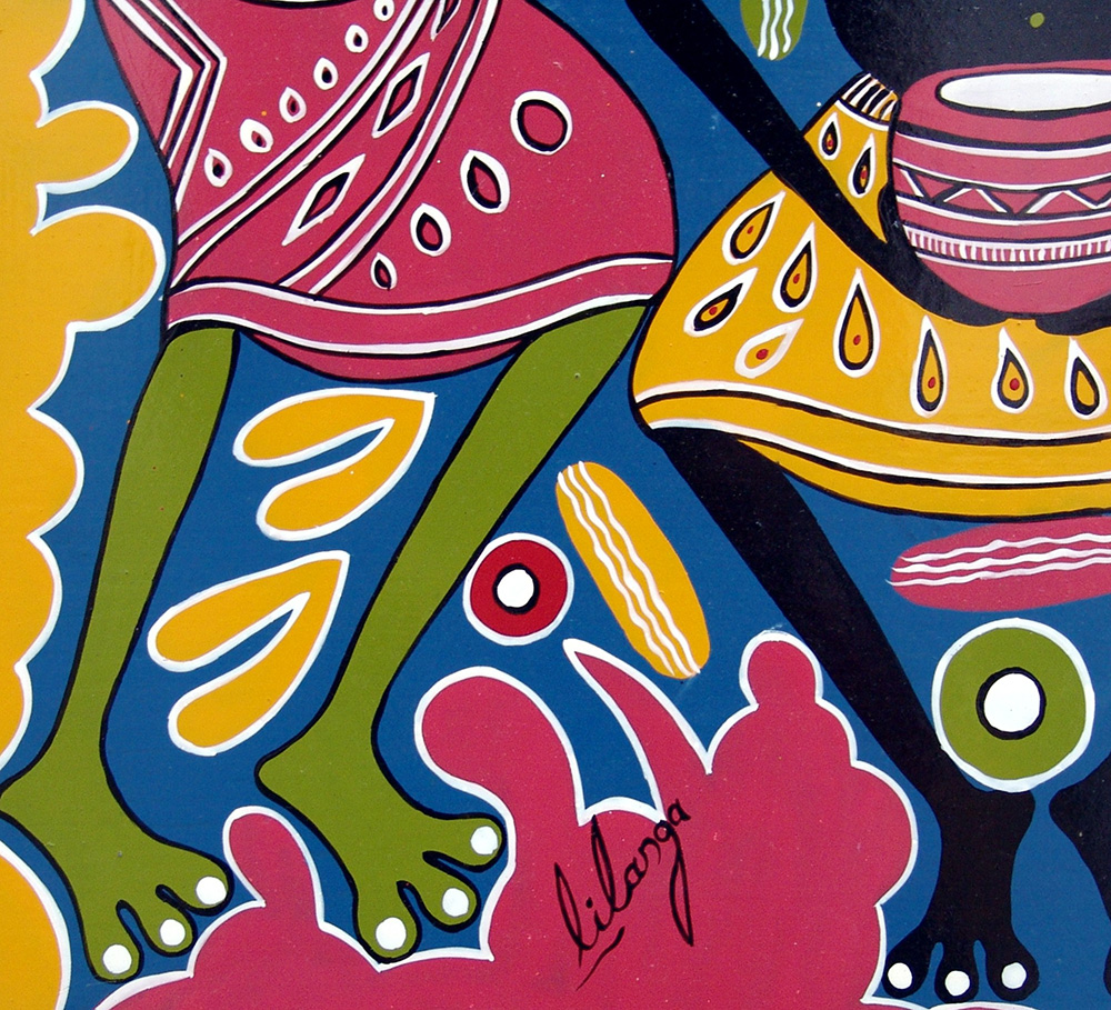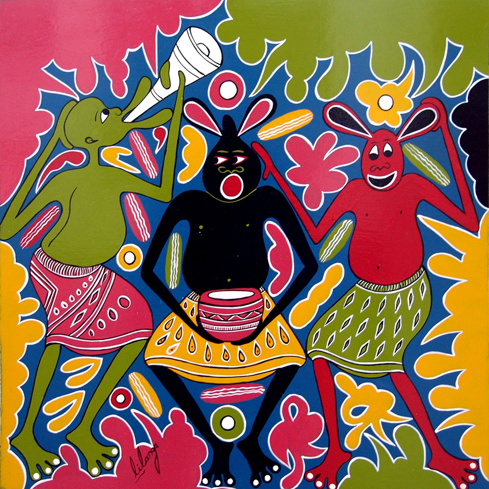 George Lilanga 1934, Kikwetu - 2005, Dar es Salaam - [Tanzania] Kusoma wala acrilico su tavola 61x61 cm firma dell’artista in basso a sinistra certificato di autenticità rilasciato da Felix Lorenz