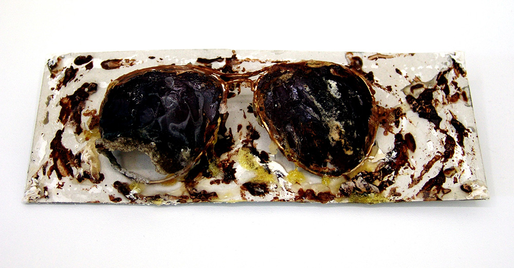 Stefano Bianco 1989, Torino (To) - [Italia] Pietro Massaioli 1990, Torino (To) - [Italia] Occhiali sciolti di luce assemblaggio 8x21x3 cm 2017 firma degli artisti sul retro certificato di autenticità firmato dagli artisti