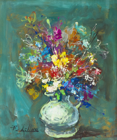 F. Chellini Vaso di fiori Olio su faesite, cm. 42x34 Firmato in basso a...