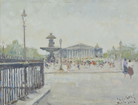 Gino Paolo Gori Firenze 1911 - Firenze 1991 La place de la Concorde, Paris, 1954 Olio su tela, cm. 30x40 Firma e data in basso a destra. Sul verso: firma, data e titolo.