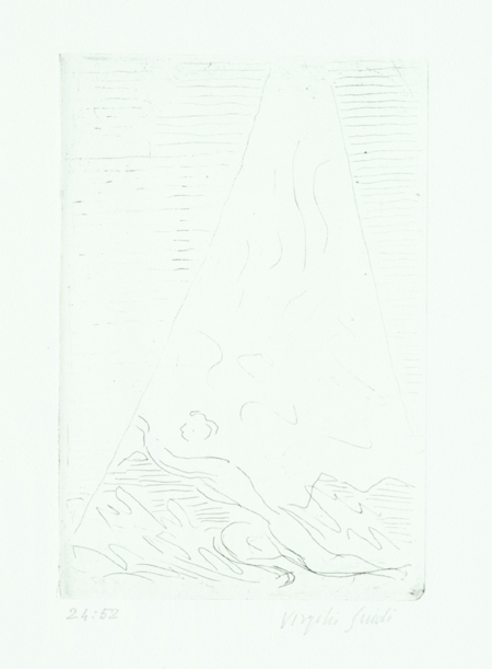 Virgilio Guidi Roma 1891 - Venezia 1984 Senza titolo Acquaforte di cm. 17x12, su carta di cm. 22x16, es. 24/52 Firma in basso a destra, tiratura in basso a sinistra.
