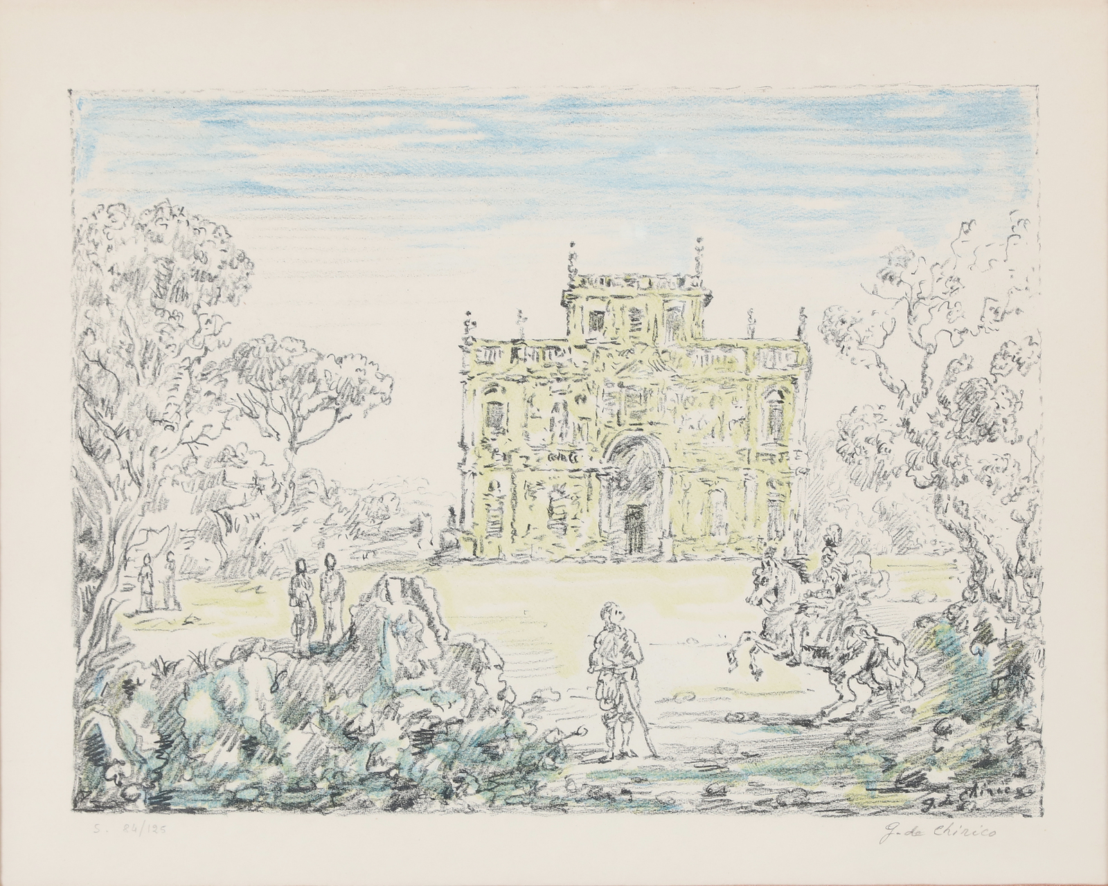 DE CHIRICO GIORGIO (1888 - 1978) Senza titolo. Litografia. Cm 48,00 x 38,00. 84/125. Tiratura e firma in basso a matita. Cornice presente